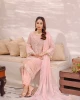 নরম ব্লাশ পিঙ্ক শেডে সাজানো এই এমবেলিশড শিফন স্যুটে রয়েছে সূক্ষ্ম অর্গানজা ও এমব্রয়ডারি কাজ এবং ক্রিস্টাল ডিটেলিং, যা আলোতে পড়ে দ্যুতিময় ঝিকমিক করে ✨